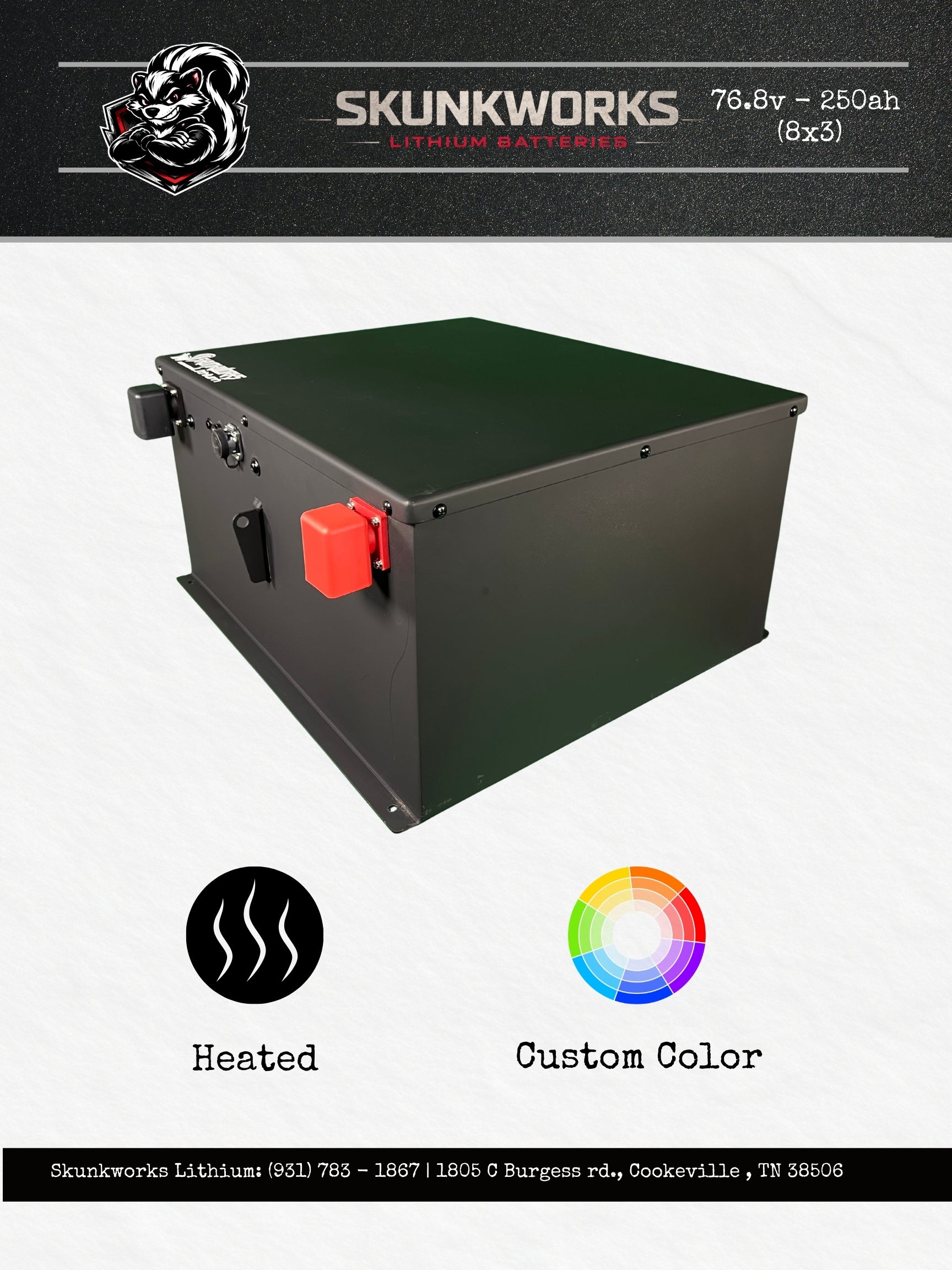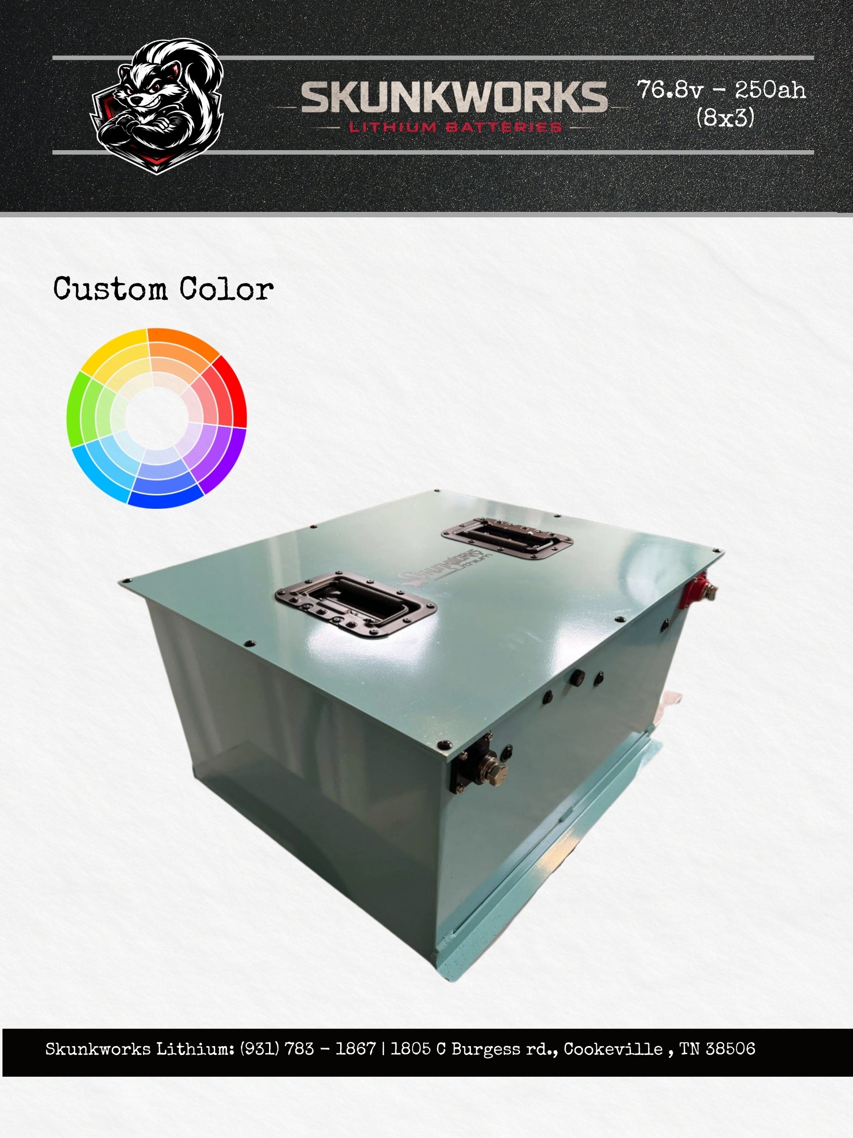 This is the 76.8v - 105ah (6x4) high performance lithium golf cart battery and installation kit by SKUNKWORKS LITHIUM.